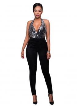 Black Sequins Hollow Out Woman Jumpsuit WE703007B