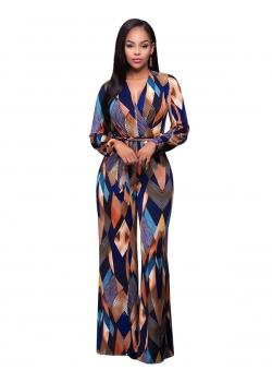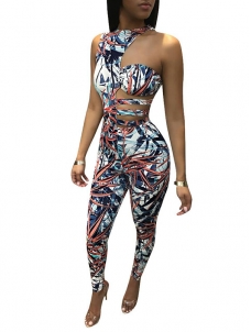 Stylish Deep V Neck Print One-piece Jumpsuits W650397