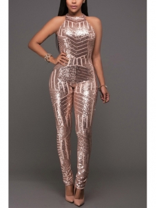 Sexy Backless Champagne Sequined Jumpsuits W650186