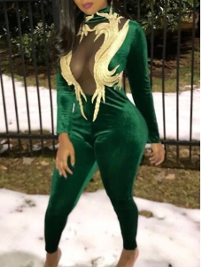 Turtleneck Patchwork See-Through Jumpsuits W650278