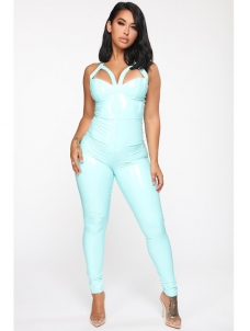 Blue S-XL Sexy V Neck Long Jumpsuit WX03482