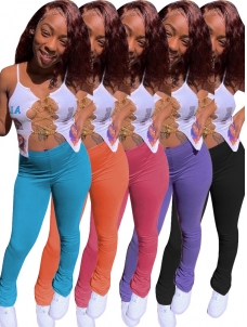 Purple Print Floral 2 Piece Set Women Short Crop Tops and Pants WE748236B