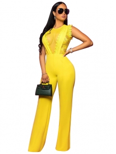 Yellow Women Lace Sleeveless Jumpsuit W640031
