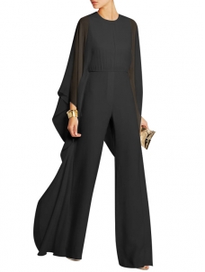 Women Solid Cape Sleeve Jumpsuits Black W960009B