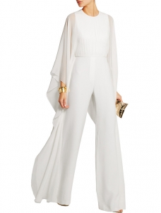 Women Solid Cape Sleeve Jumpsuits White W960009A