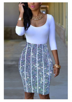 Sexy Patchwork Sequined Decorative Bodycon Dress W650701