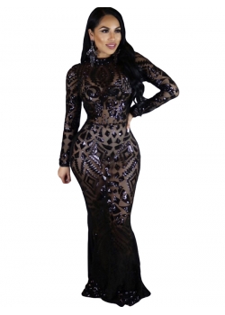 Black Sequin Bodycon Long Evening Dress W126854B