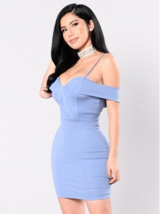 Sexy Blue V-neck Bodycon Dress W126853C