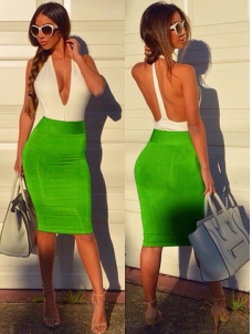 Green Tank Sleeveless Backless Patchwork Bodycon Dress W650671C