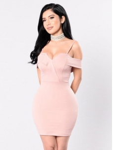 Pink Sexy Hollow-out Milk Bodycon Dress W650672C
