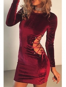 Wine Red Lace-up Hollow-out Bodycon Dress W650689B