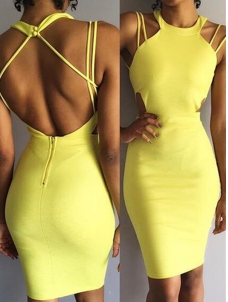 Spaghetti Strap Sleeveless Backless Bodycon Dress W650697